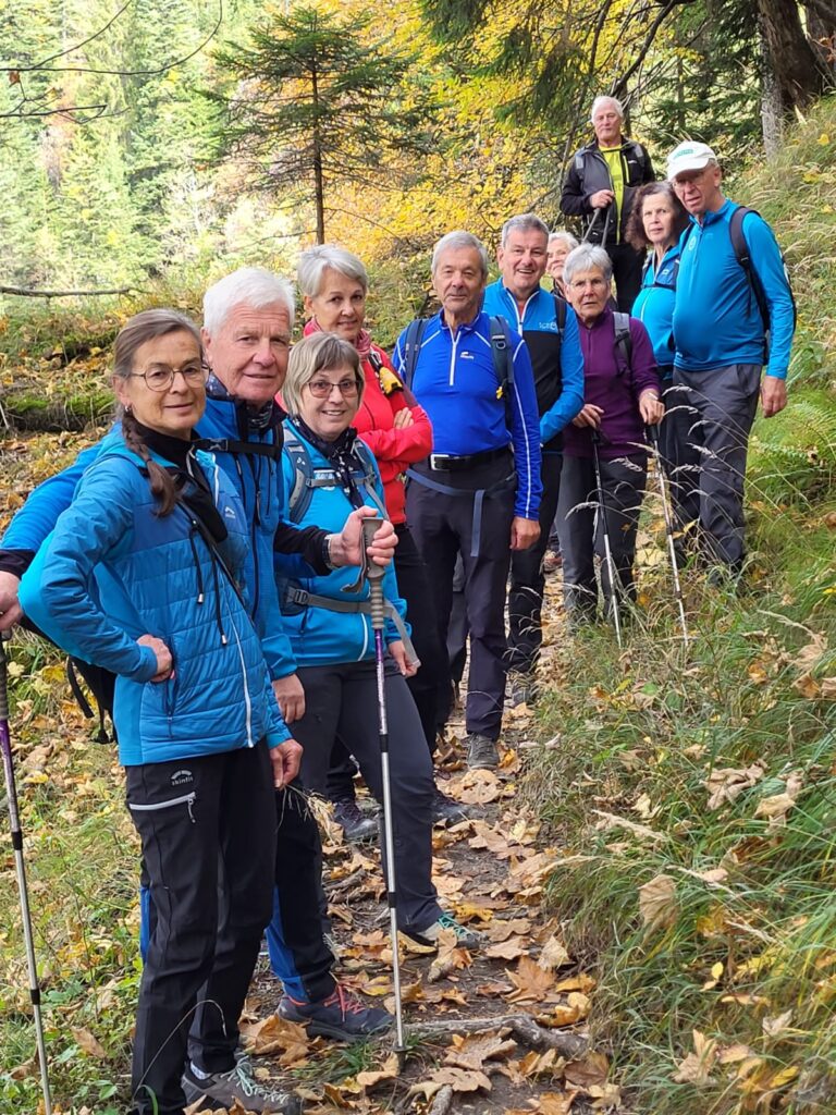 So konnten die 12 wanderfreudigen Teilnehmer und Teilnehmerinnen die Laubwanderung von Fraxern über die Alpe Schwimmersboden nach Millrütte und zurück über das Götzner Moos nach Fraxern genießen. Neben der Sonne waren die farbenfrohen Wälder und das raschelnde Laub unter den Füßen auch eine Wohltat. Die Laubwanderung fand dann in der Waldrast beim „Fraxner“ Sportplatz den Ausklang. Hier gesellten sich auch noch 5 Figl Fan’s dazu, welche die Tour in einer verkürzten Route erwanderten.